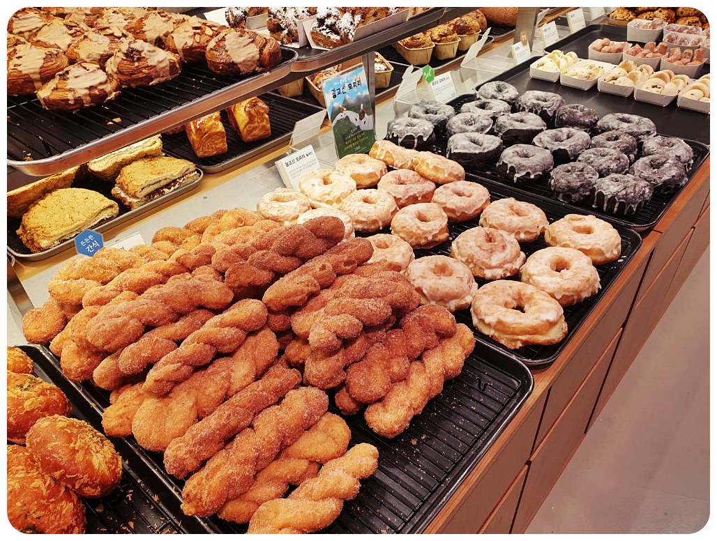 저에게 특히 눈길을 끌었던 곳은 도너츠 코너였어요. 빵들이 대체로 4,000원부터 책정되어 있어 가격대가 조금 있는 편이지만, '극한직업'에 소개된 유명한 빵집이라는 점을 고려하면, 가격이 엄청 비싸다고는 느껴지지 않았습니다.