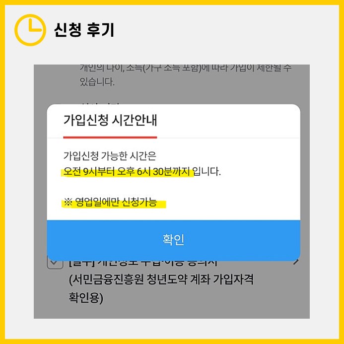 가입신청은 영업일 기준 오전 9시부터 오후 6시 30분까지 가능합니다.