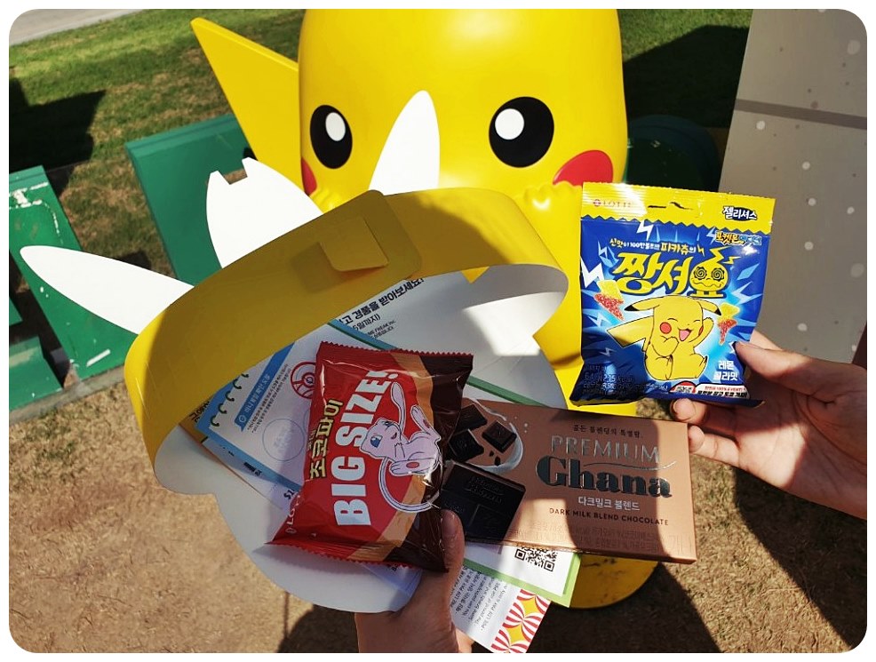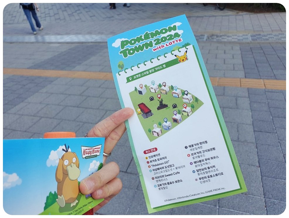 입구에서는 피카츄 썬캡과 함께 스탬프 찍을 수 있는 팜플렛, 그리고 롯데 계열사 할인 쿠폰을 받았습니다. 늦은 시간에는 재고가 소진될 수 있다고 하더군요.