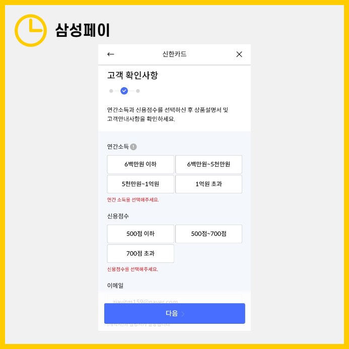 이 과정에는 상품 설명서에 대한 동의와 고객 확인사항 입력, 그리고 신용 한도 설정이 포함됩니다.