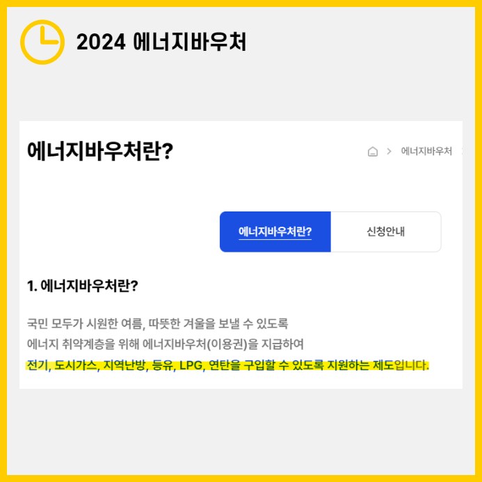 2024년 에너지바우처는 저소득층 가구의 에너지 비용을 덜어주기 위해 정부에서 제공하는 지원 제도입니다. 전기, 지역난방, 도시가스, LPG, 연탄, 등유 등의 에너지 비용이 취약계층에게 큰 부담이 될 수 있기 때문입니다.