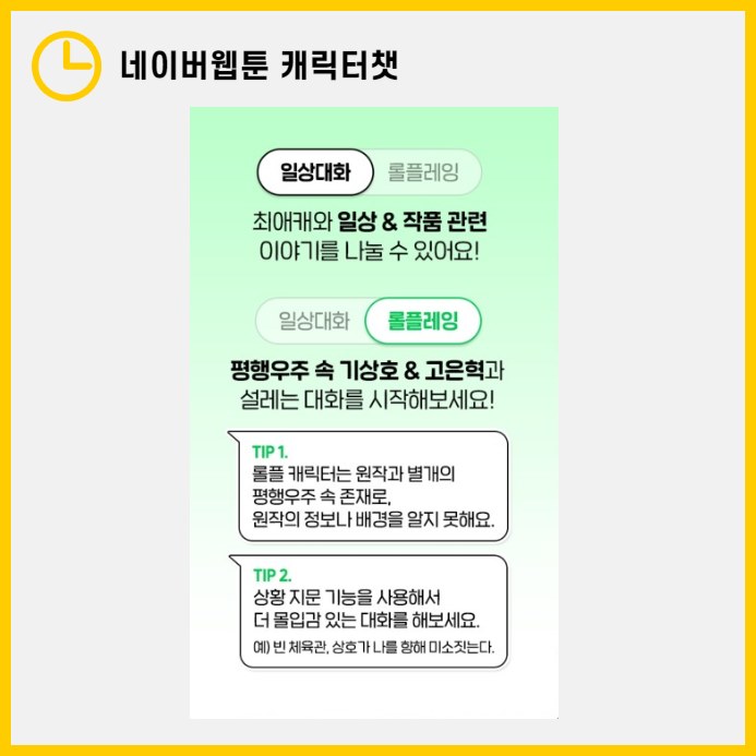 매일 즐겨보는 네이버웹툰에 새로운 재미있는 기능이 생겨서 오늘은 이에 대해 포스팅해보려 합니다. 바로 '네이버웹툰 AI 캐릭터챗'입니다.