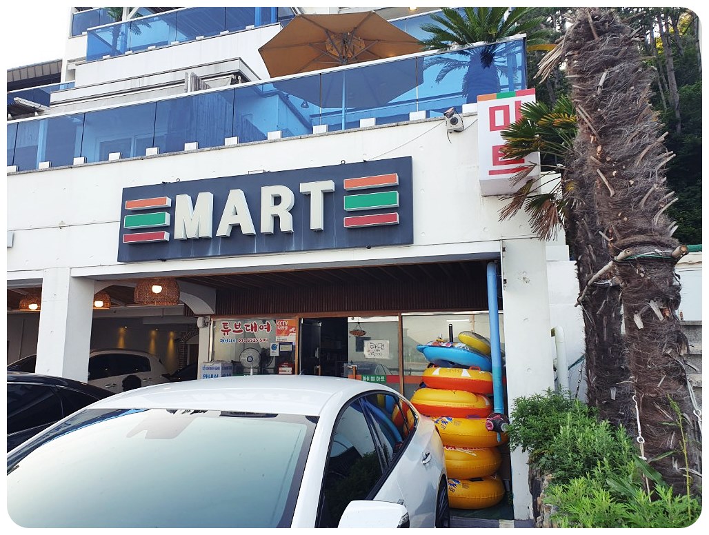 근처에 아이엠마트가 있지만, 밤 9시까지 운영하고 품목이 많지 않아 미리 큰 마트에서 필요한 물품을 준비해 가는 것이 좋습니다.