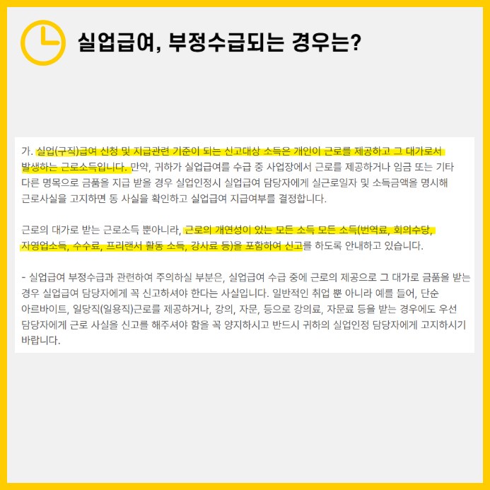 구직급여 수급 중에 소득이 발생했는데 이를 신고하지 않은 경우도 부정수급에 해당됩니다.