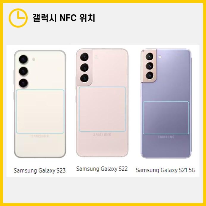 - S22, S21: 기기 가운데 약간 아래쪽에 위치해 있어 결제나 데이터 전송 시 해당 부분을 단말기에 대면 잘 인식됩니다.