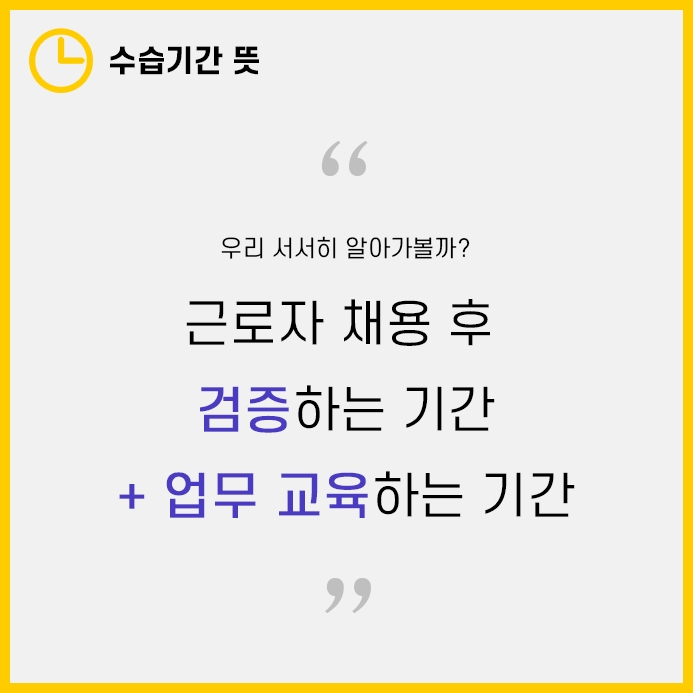 수습기간이란 채용 후 근로자를 검증하고 업무를 교육하는 기간입니다.