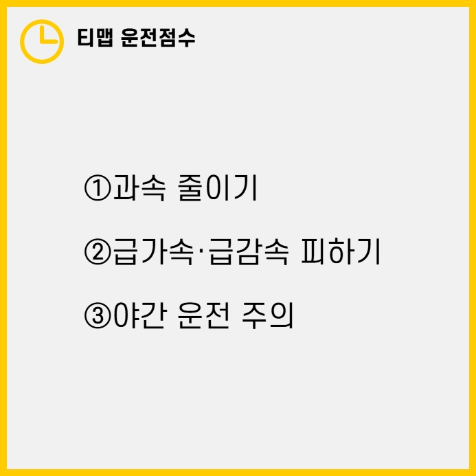 2. 급가속·급감속 피하기: 점수를 높이는 데 가장 어려웠던 부분이 급가속과 급감속을 피하는 것이었습니다. TMAP에서는 1초 이내에 10km 이상의 속도 변화를 감지하여 감점하게 되는데요, 저도 운전 초반에는 급하게 출발하거나 멈추는 습관이 있었지만, 앞차와의 거리를 넉넉히 유지하고 부드럽게 가속·감속하는 연습을 통해 점수를 조금씩 높일 수 있었습니다.
