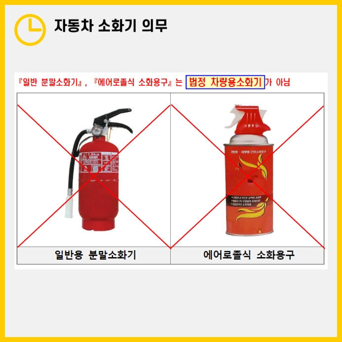 차량 소화기 비치 의무화와 시행일?