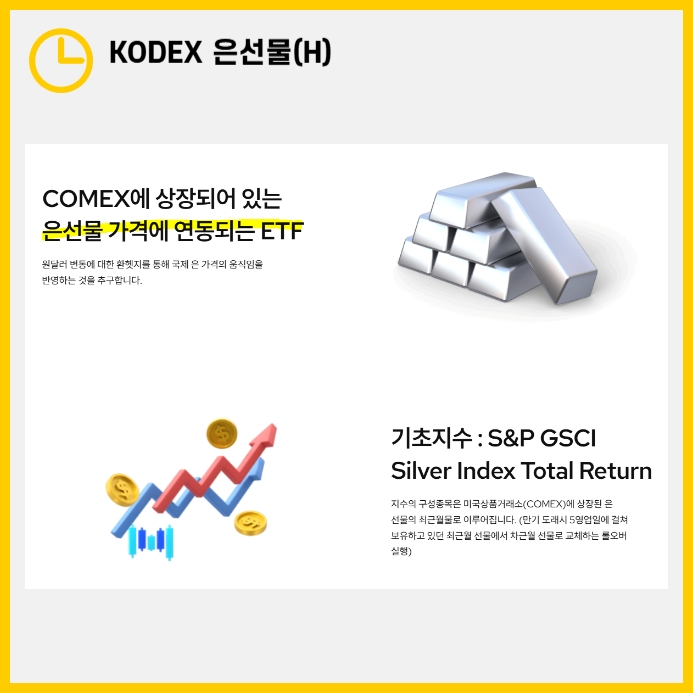 KODEX 은선물(H) ETF는 주로 은 선물과 관련된 장내 파생상품에 투자합니다. 이 ETF는 COMEX에서 거래되는 은 선물 가격을 기반으로 S&P GSCI Silver TR 지수를 추종합니다. 투자자는 최소 1주 단위로 거래할 수 있으며, 연 0.680%의 관리 보수가 발생합니다. 배당금은 재투자되는 방식으로 운영되며, 주가와 수익률이 변동성이 크기 때문에, 투자자는 리스크를 면밀히 이해하고 신중하게 접근해야 합니다.