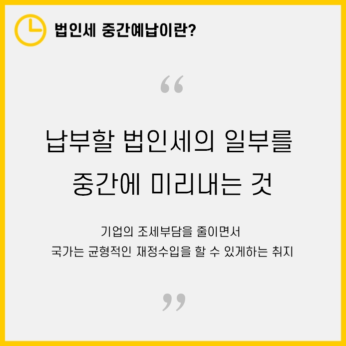 법인세 중간예납은 납부할 법인세 중 일부를 미리 국가에 납부하는 것을 의미합니다.