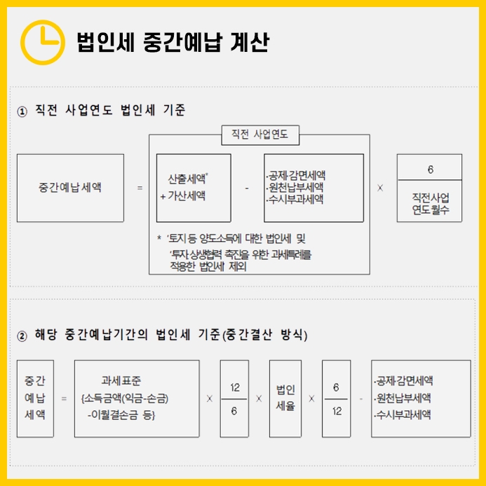법인세 중간예납 계산은 크게 2가지로 나뉩니다.