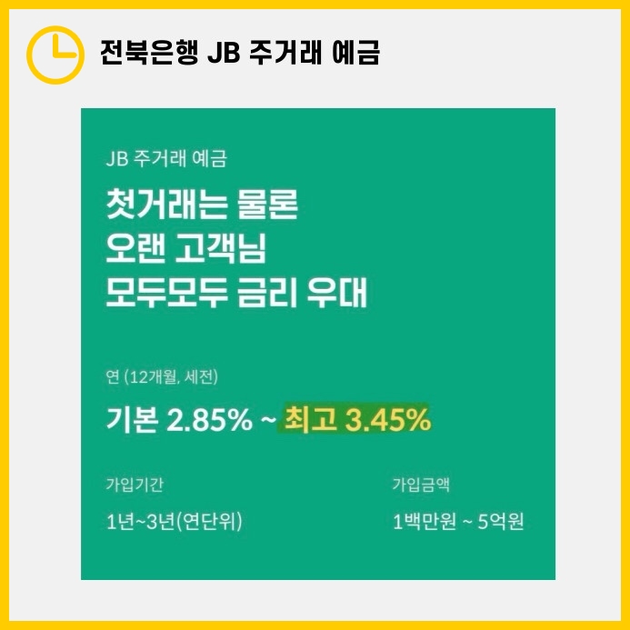 전북은행 JB 1·2·3 정기예금, 고금리 높은 상품