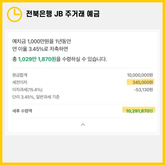 최근 금리가 전반적으로 낮아지면서 매력적인 예·적금 상품을 찾기가 쉽지 않은데요. 전북은행의 JB 주거래 예금은 기본 금리만으로도 경쟁력이 높고, 우대 조건을 충족하면 최고 3.45%까지 받을 수 있어 관심을 끌고 있습니다. 이번 글에서는 JB 주거래 예금의 주요 조건과 이율, 예상 이자를 꼼꼼히 살펴보겠습니다.