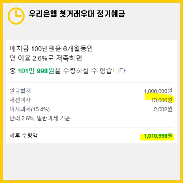 6개월간 100만 원 예치, 기본 금리 2.6% 적용