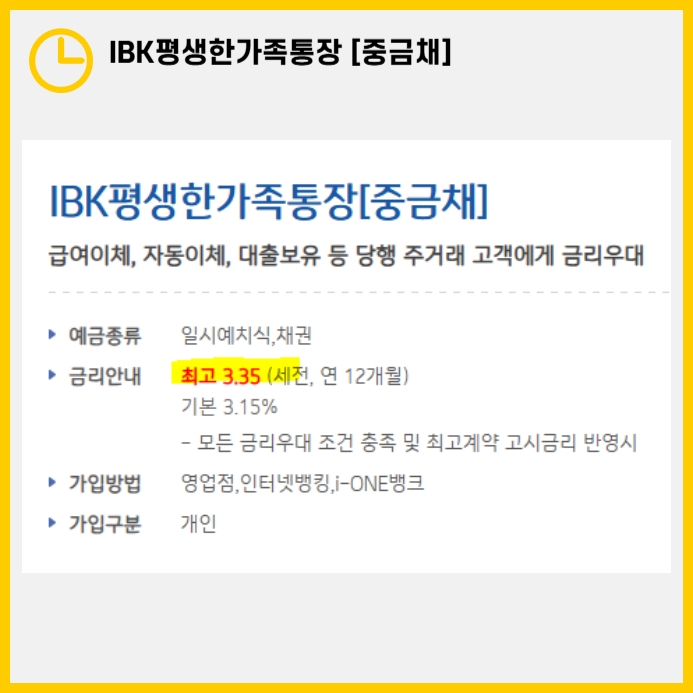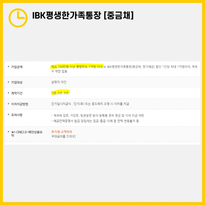 고금리를 제공하는 'IBK평생한가족통장 [중금채]'는 장기 예금을 고려하는 고객들에게 추천할 만한 선택입니다. 안정성과 수익률을 동시에 잡고 싶은 분들에게 적합한 이 상품을 한 번쯤 검토해 보시길 권합니다.