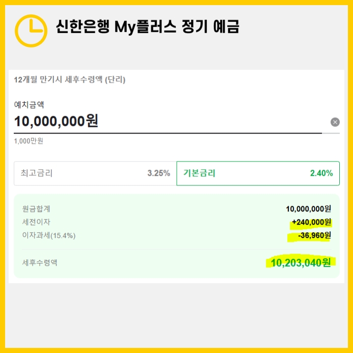 - 세후 수령액: 약 1,020만 3,040원 (원금 포함)