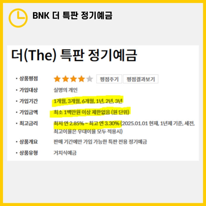 | 정기예금 특판 추천: 경남은행 The든든 예금 시즌2 (2) | 2025.01.05 |