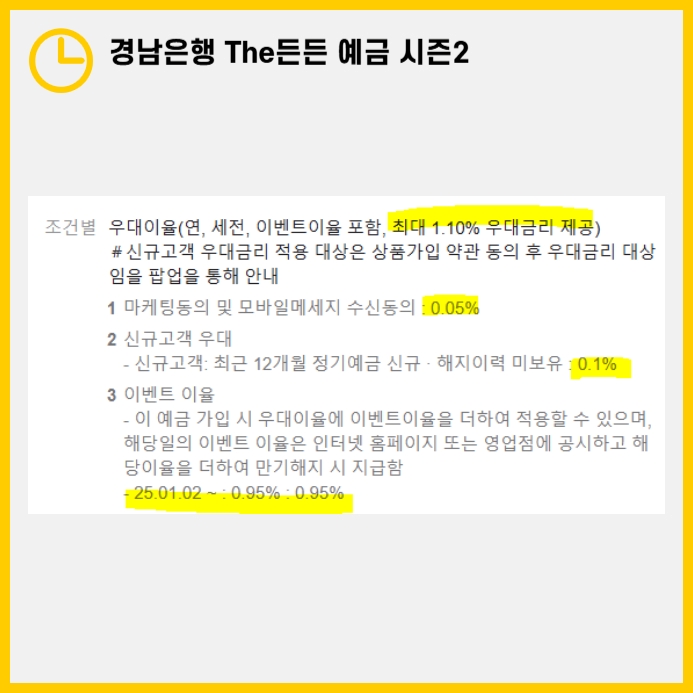 | BNK 부산은행 더(The) 특판 정기예금: 1 · 3 · 6개월, 1년 (1) | 2025.01.03 |