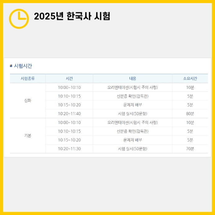 - 기본 시험: 오전 10시~11시 30분 (총 70분)