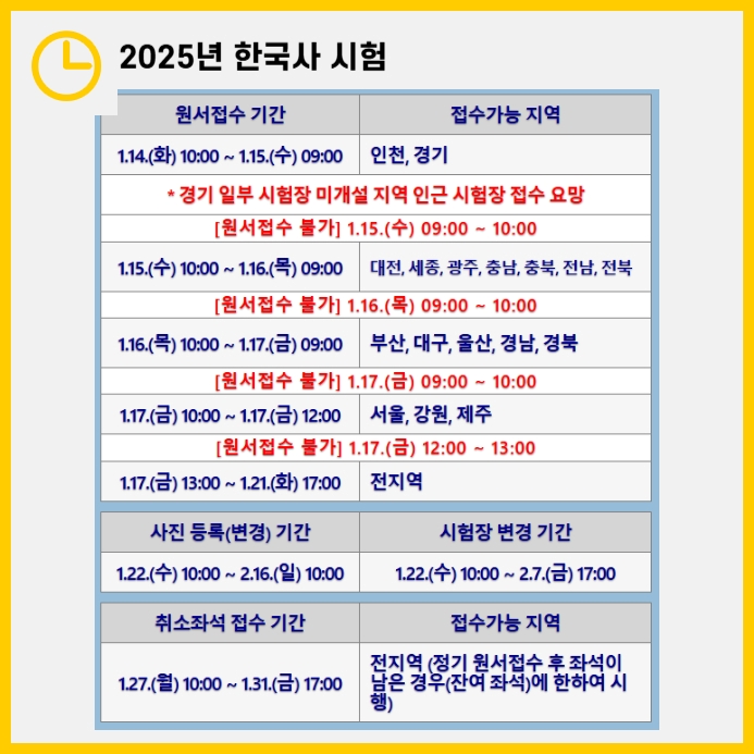 | 일정 | 접수 가능 지역 |
