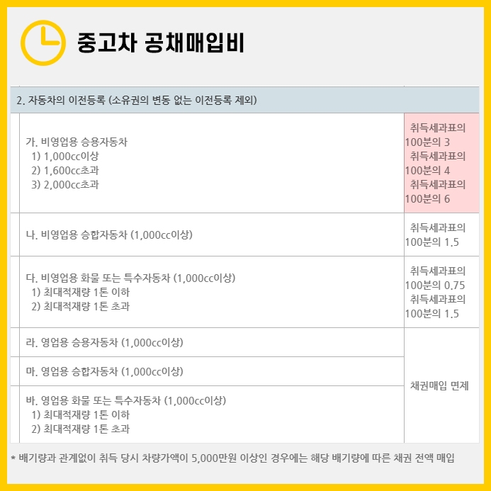 그렇기 때문에 큰 금액은 아니지만 중고차 이전등록비에 포함된다는 사실 정도만 기억해주시면 됩니다.