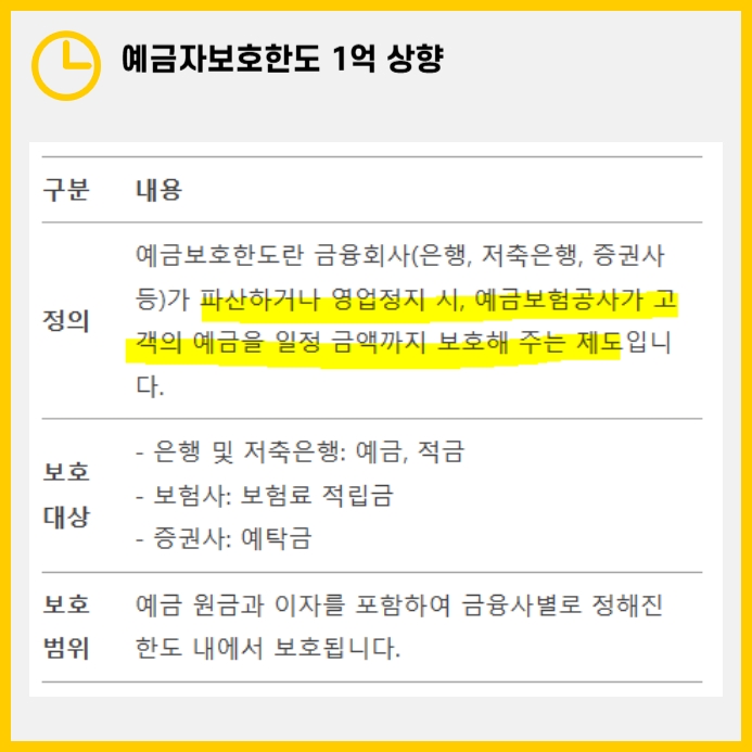 - 보호 한도 상향: 기존 5,000만 원에서 1억 원으로 올라 예금을 여러 은행에 분산할 필요가 줄어듭니다.