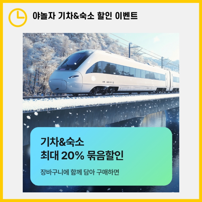 야놀자는 코레일과 협력하여 KTX, 무궁화호, ITX 기차표를 예약할 수 있도록 서비스를 제공하고 있습니다. 야놀자가 사전 확보한 좌석을 판매하는 방식이라, 코레일에서 매진된 좌석도 예약할 수 있는 장점이 있습니다. 또한, 기차표와 숙소를 함께 예약하면 최대 20%까지 할인받을 수 있는 프로모션도 진행 중입니다. 기차 여행을 계획하고 있다면 이 혜택을 적극 활용하여 보다 저렴하게 여행을 즐길 수 있습니다.