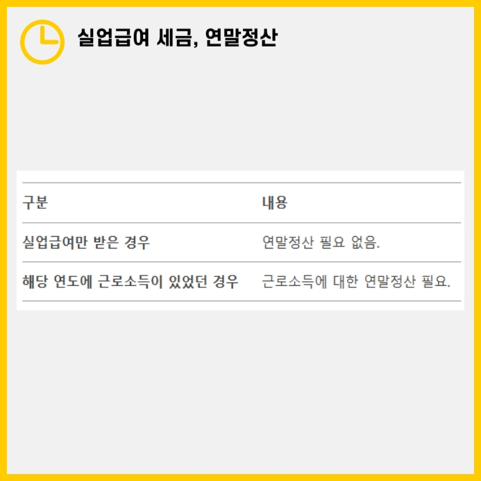 구직급여만 받는 경우라면 연말정산을 할 필요가 없습니다. 연말정산은 근로소득이 있는 사람이 대상이므로, 실업급여 수령자는 해당되지 않습니다. 하지만 해당 연도에 근로소득이 있다면 근무했던 기간 동안의 소득에 대해 연말정산을 진행해야 합니다. 구직급여만 받은 경우에는 연말정산을 따로 진행하지 않아도 됩니다. 반면, 같은 연도에 일정 기간 동안 근로소득이 있었다면 근무했던 회사에서 지급한 급여를 기준으로 연말정산을 진행해야 합니다. 이 경우, 구직급여는 비과세 소득이므로 연말정산 소득 신고 대상에 포함되지 않으며, 근로소득만을 기준으로 연말정산이 이루어집니다.