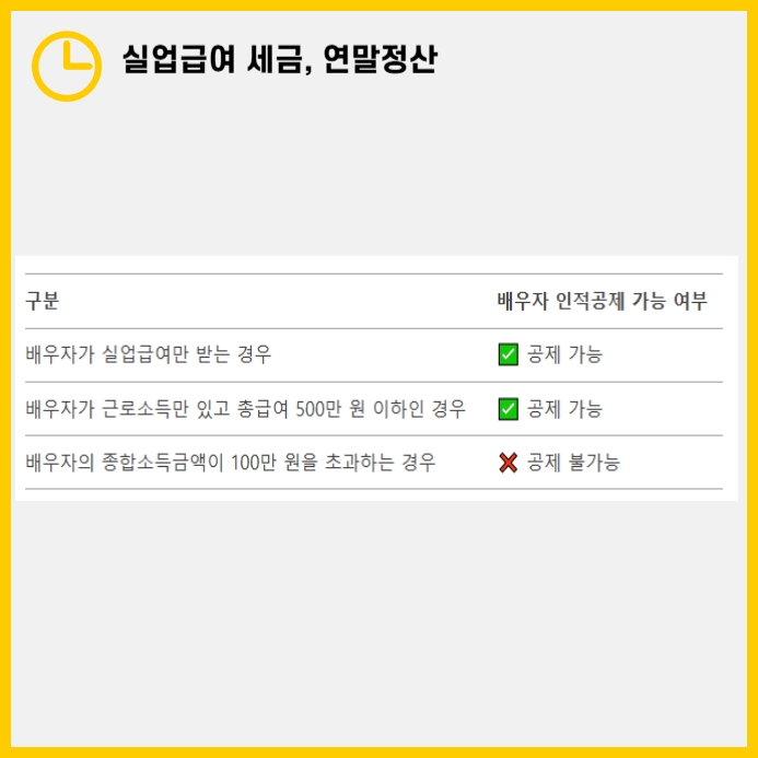 ⭐ 실업급여 받는 배우자도 인적공제 대상인가요?