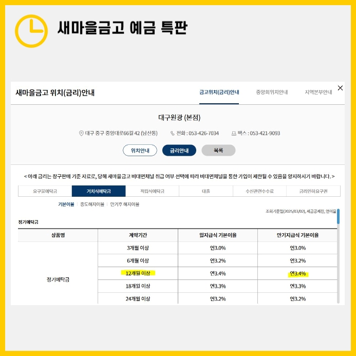 대구원광(본점)은 연 3.4%의 이율을 보였습니다.