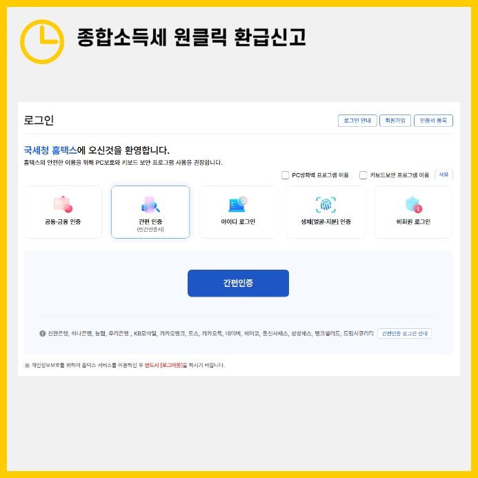로그인은 간편인증으로도 가능해 복잡하지 않으며, 로그인 후 본인에게 해당하는 환급금 내역이 자동으로 안내됩니다.
