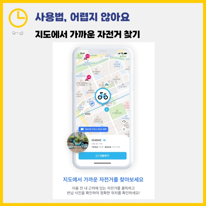 이후 원하는 자전거를 선택하고, QR코드를 스캔하면 바로 대여가 시작됩니다.