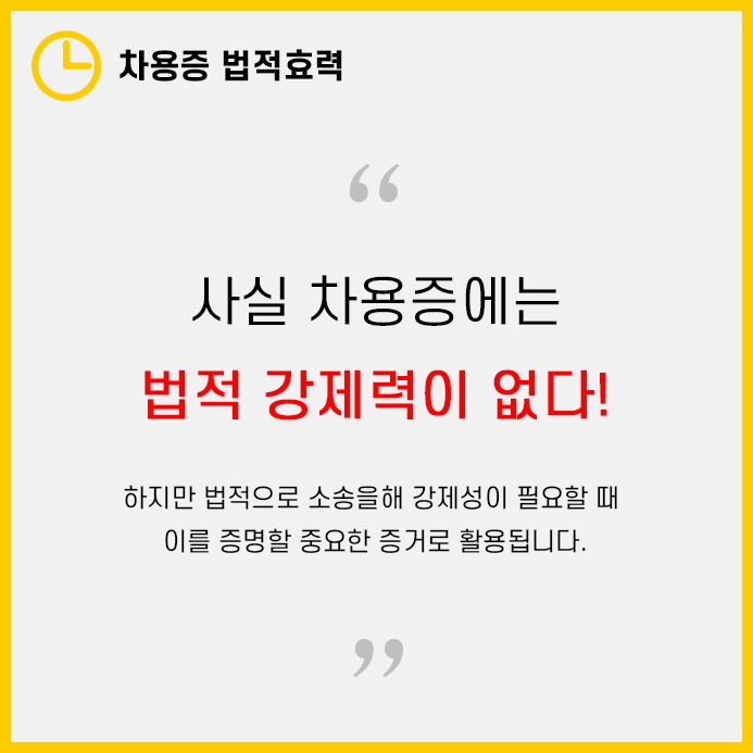 이름만 들으면 차용증에는 법적효력이 있을 것 같지만, 차용증만으로는 법적효력이 없습니다.