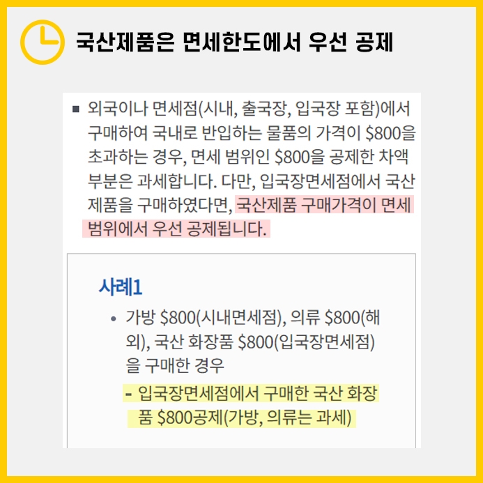 하지만 국산 제품을 구매했다면 면세한도에 우선적으로 공제를 하게됩니다.