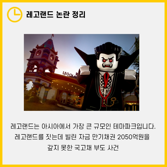 11년만에 거액의 금액을 들여 레고랜드를 완공했으나, 문을 열었음에도 투자금을 만기에 갚지 못하게 된 것입니다.