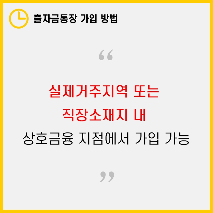 출자금통장은 실제 거주지 또는 직장소재지 내 상호금융지점에 가입해야 합니다.
